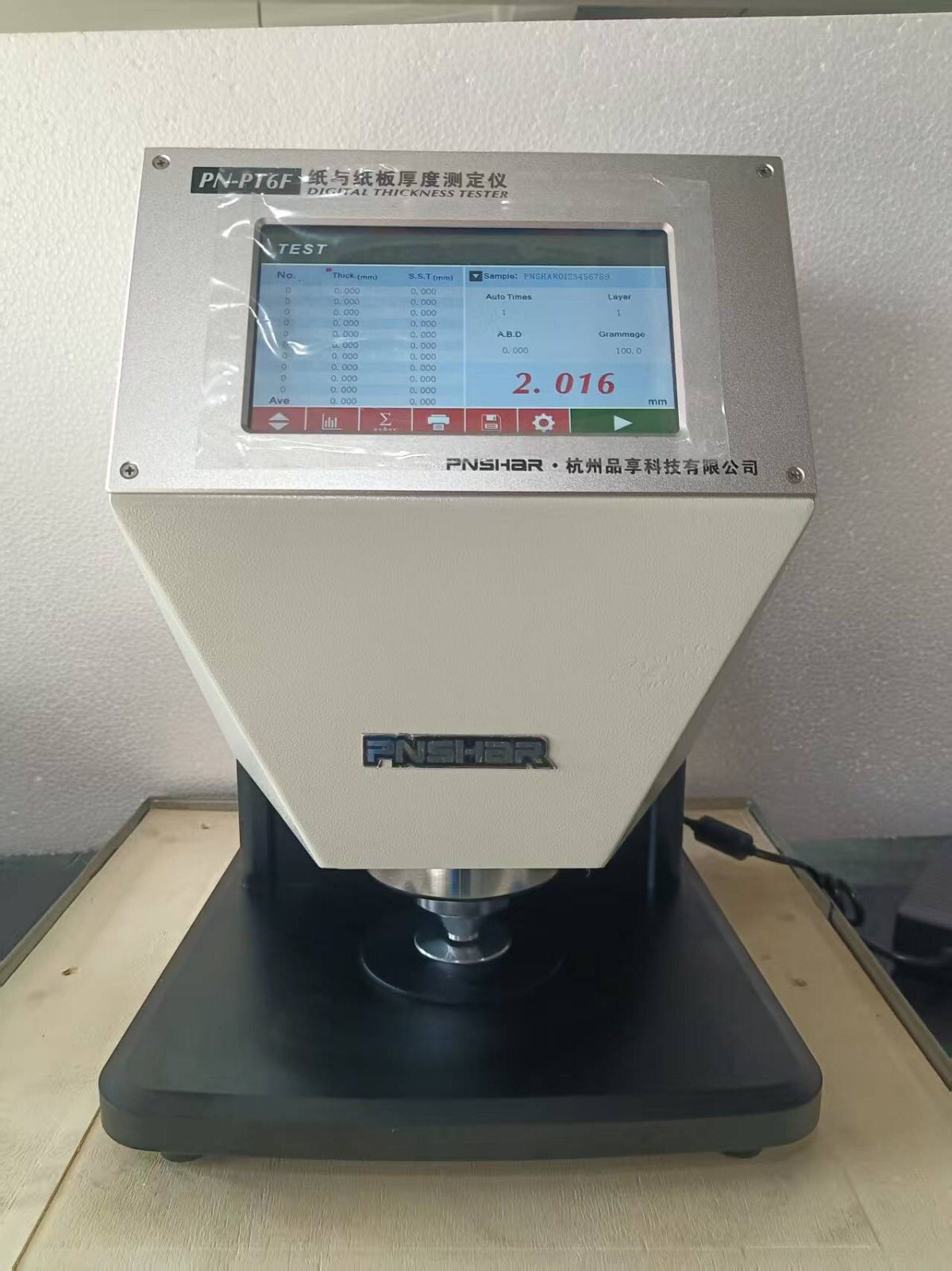 #PNSHAR PN-PT6F Digital thickness tester is a testing instrument designed to measure the thickness of paper and paperboard according to relevant standards of GB/T 451.3, QB/T 1055, ISO 534, ISO 438.